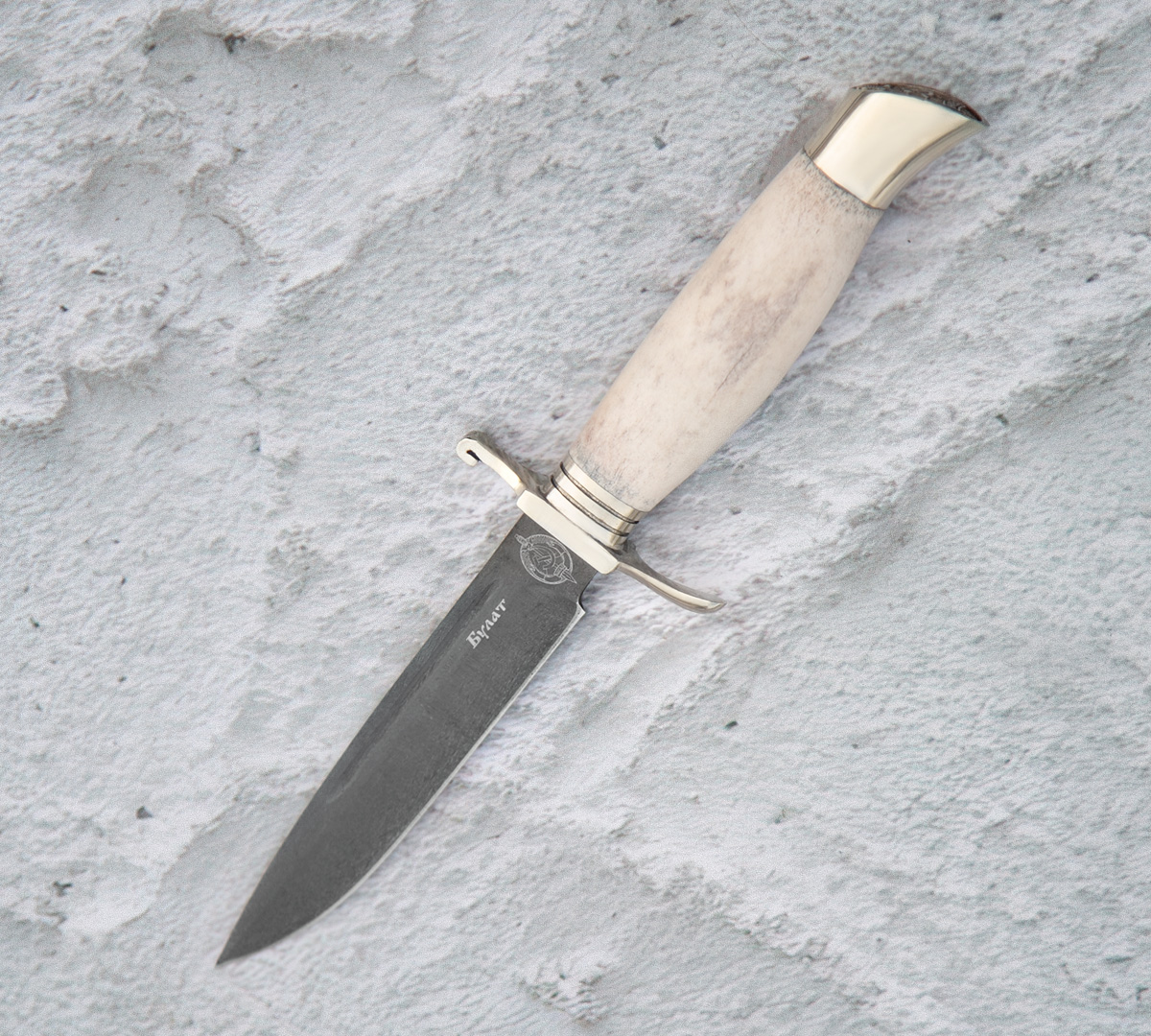 Финка НКВД из булатной стали, рукоять - лосинный рог, кожаный чехол идет в комплекте.