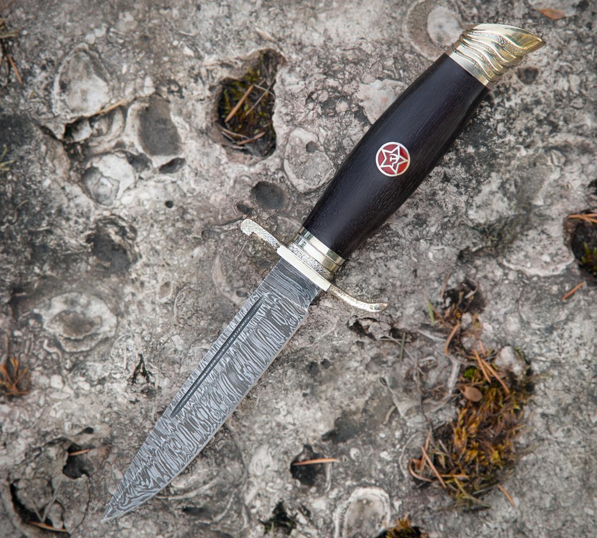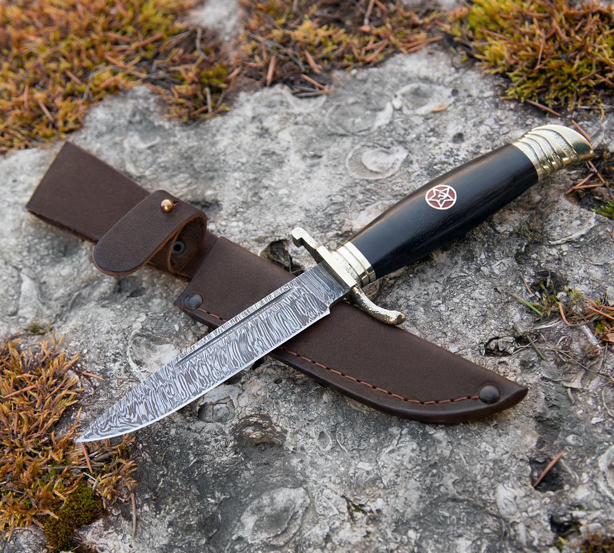 Финка НКВД из дамасской стали, рукоять - черный граб, кожаный чехол идет в комплекте.