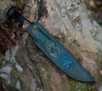 Нож Сибиряк из мозаичной дамасской стали, рукоять - стабилизированный кап клёна, зуб мамонта. Формованный чехол идет в комплекте.